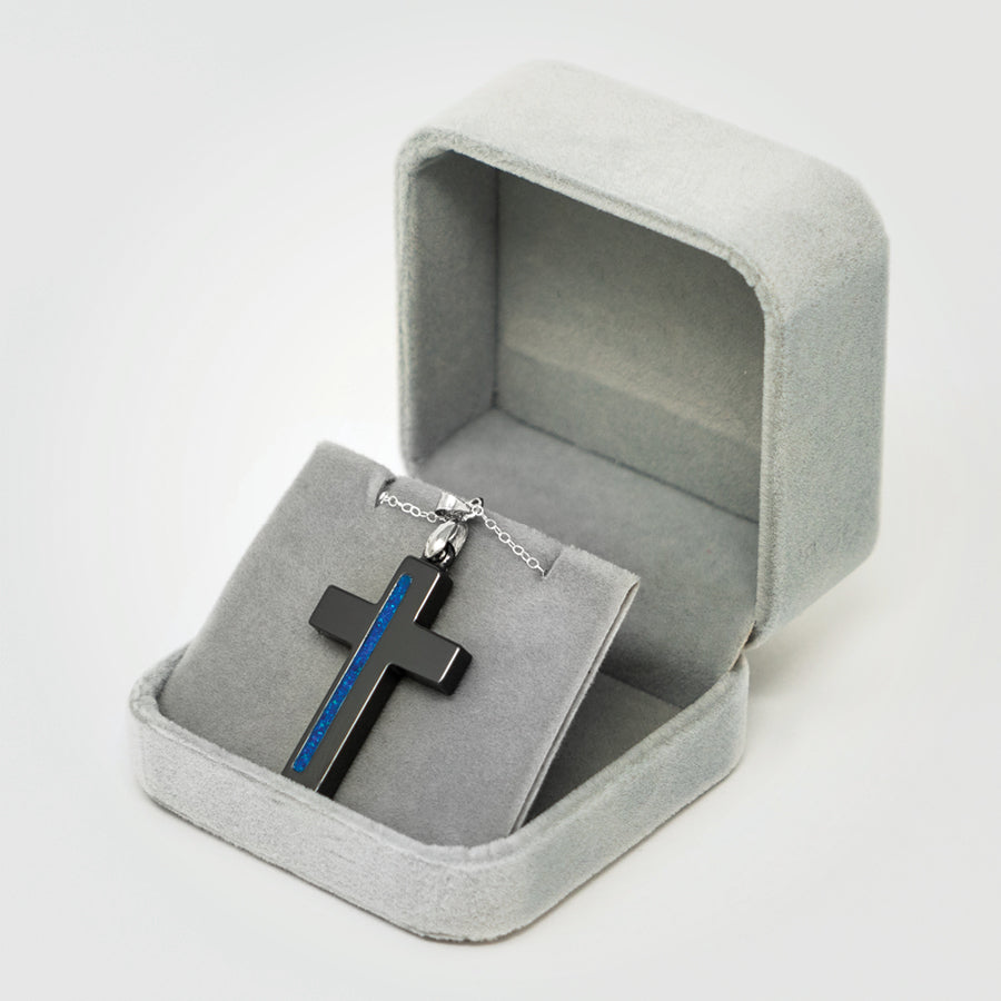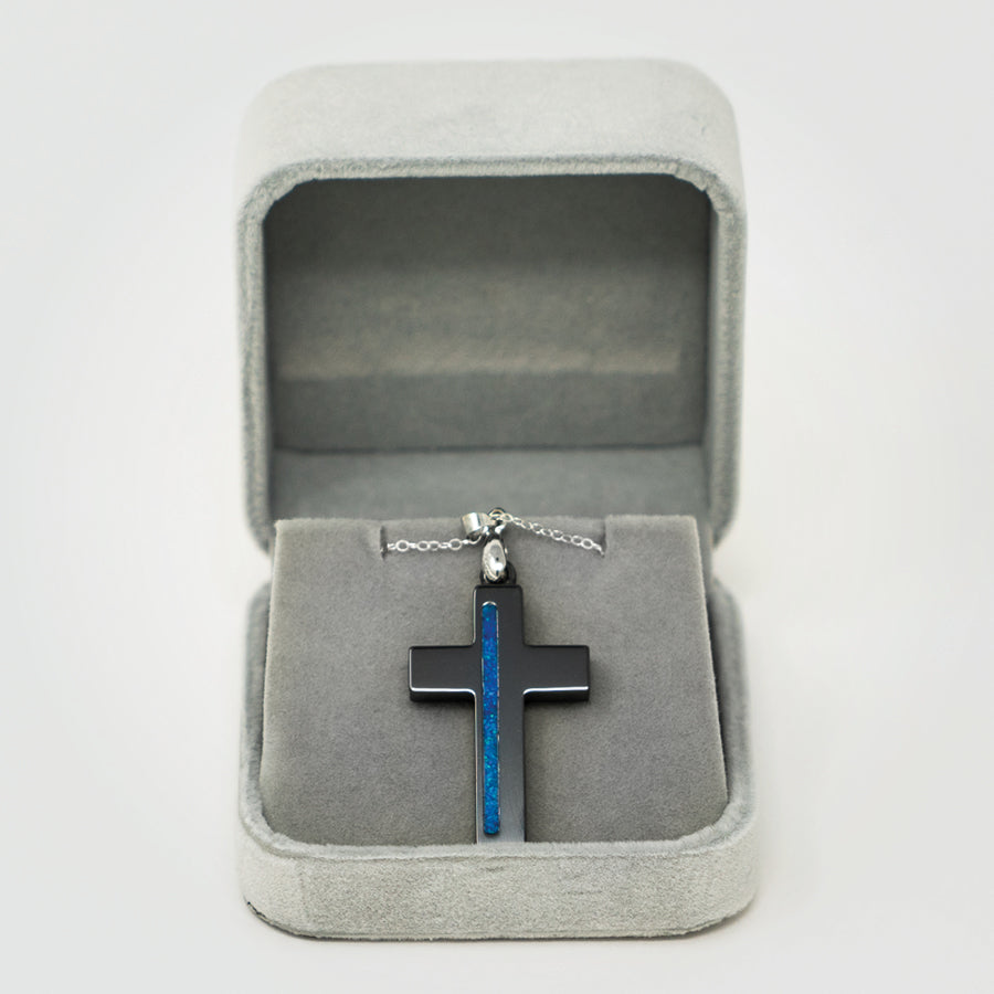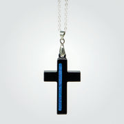 T2T Thin BLUE Line Cross Necklace – (Black Ceramic)