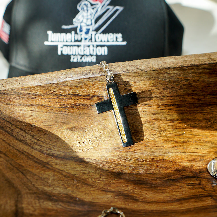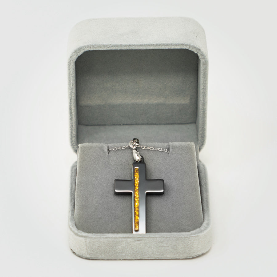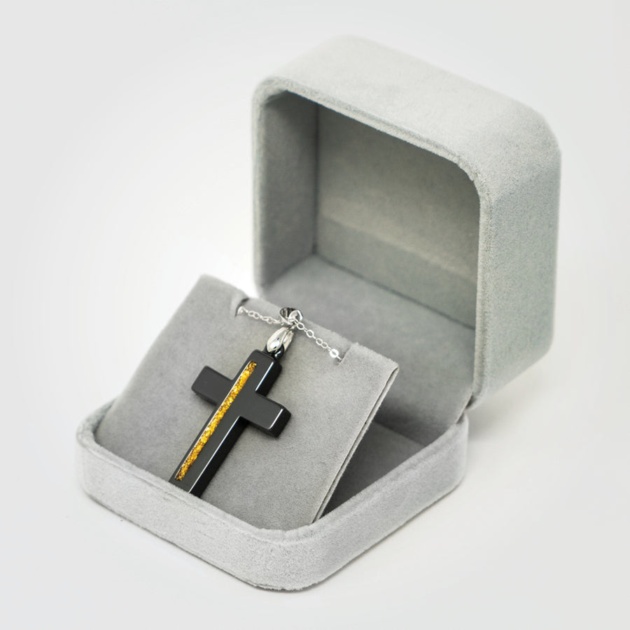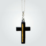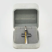 T2T Thin GOLD Line Cross Necklace – (Black Ceramic)