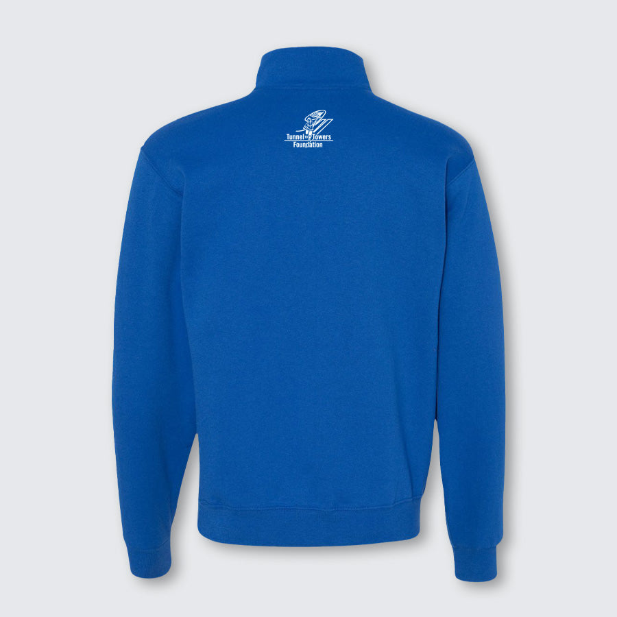 Now in Royal Blue, this Quarter Zip Sweatshirt features our running fireman icon embroidered on the front. Stay warm on those chilly morning runs while showing your support of America’s heroes.  Also available in Navy Blue.
